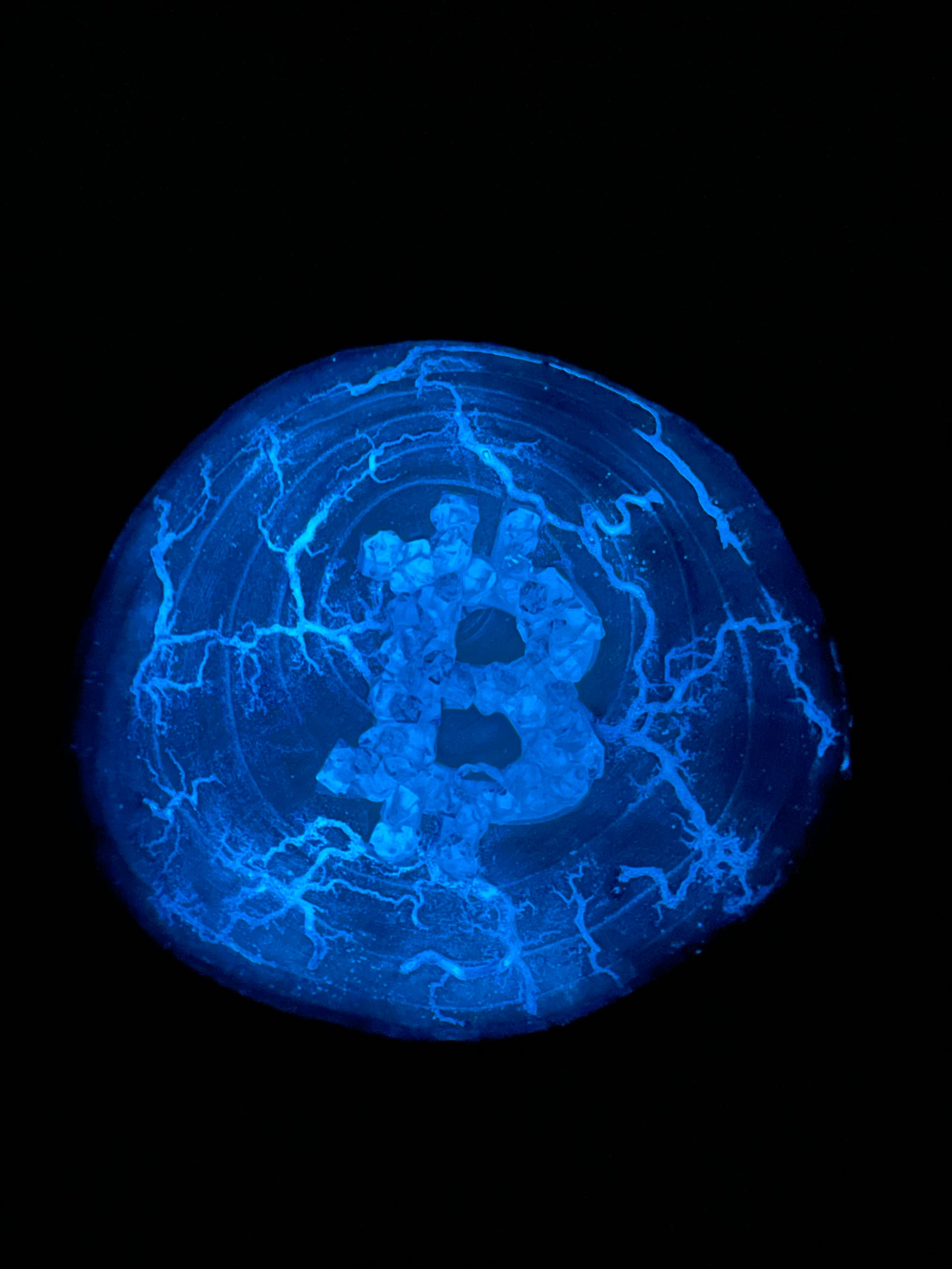 This piece has all the attributes of the Essence of Bitcoin style, but we took it a bit further, and really made the B big, bold and bright. Makes a serious statement!