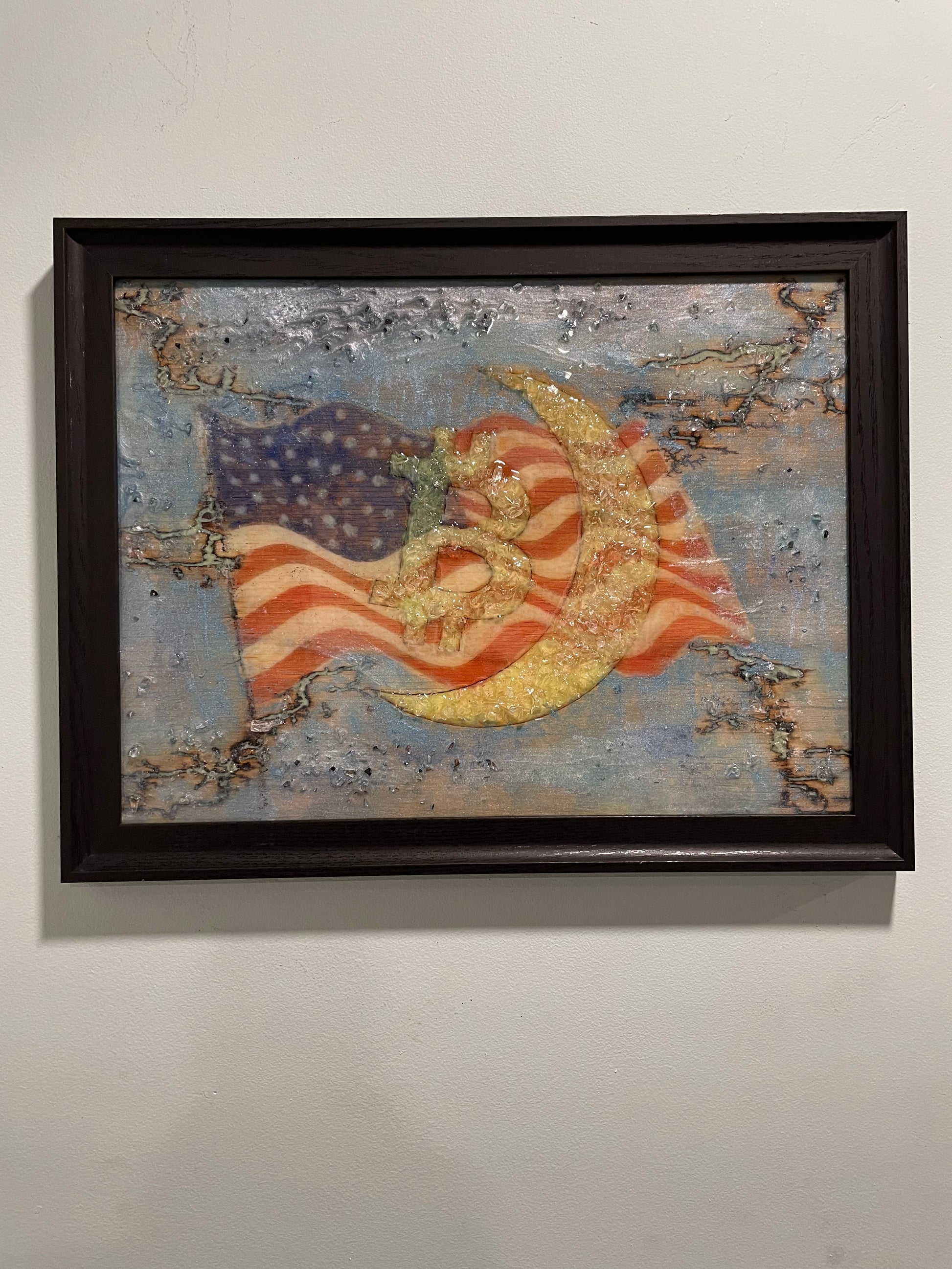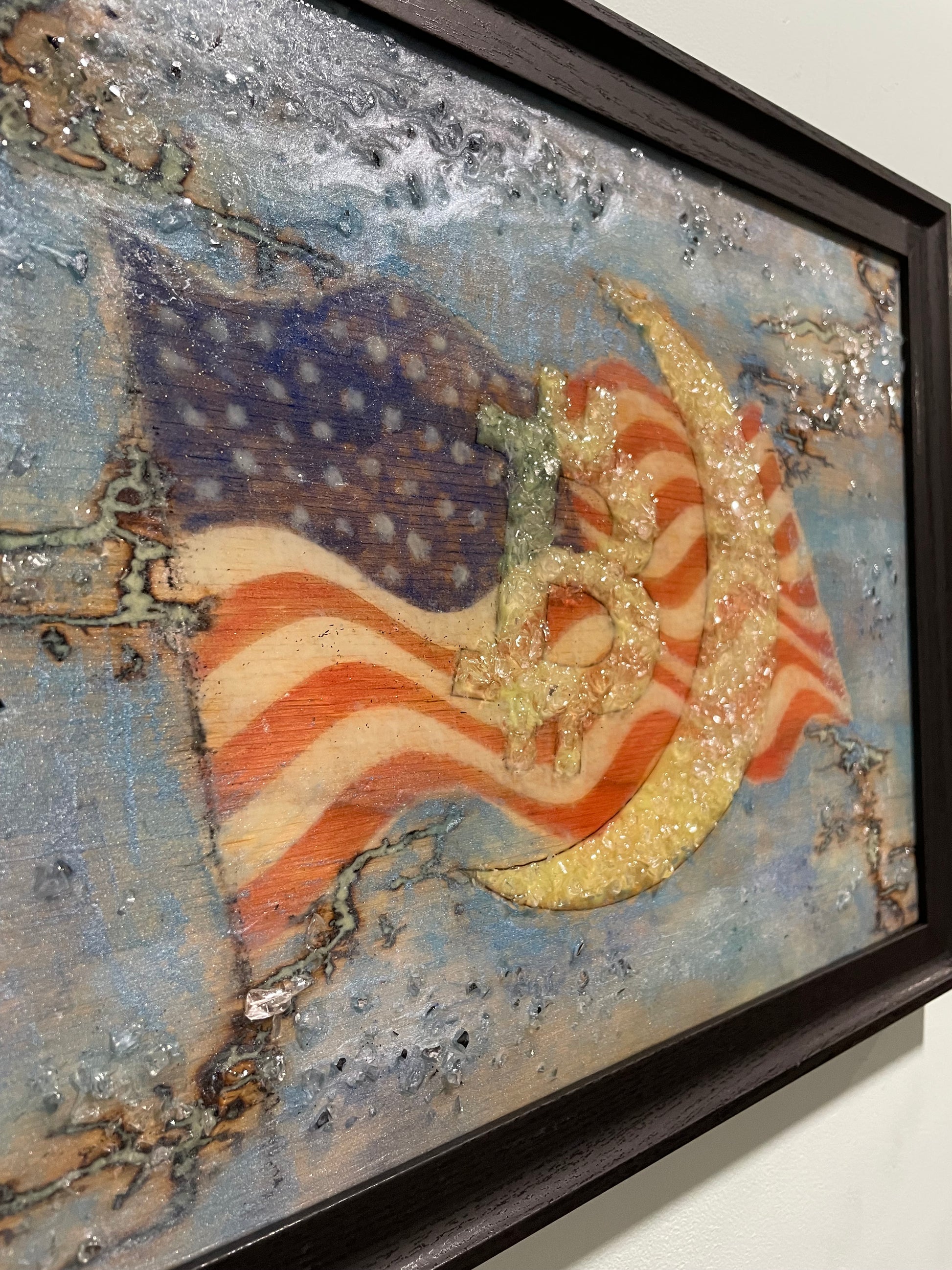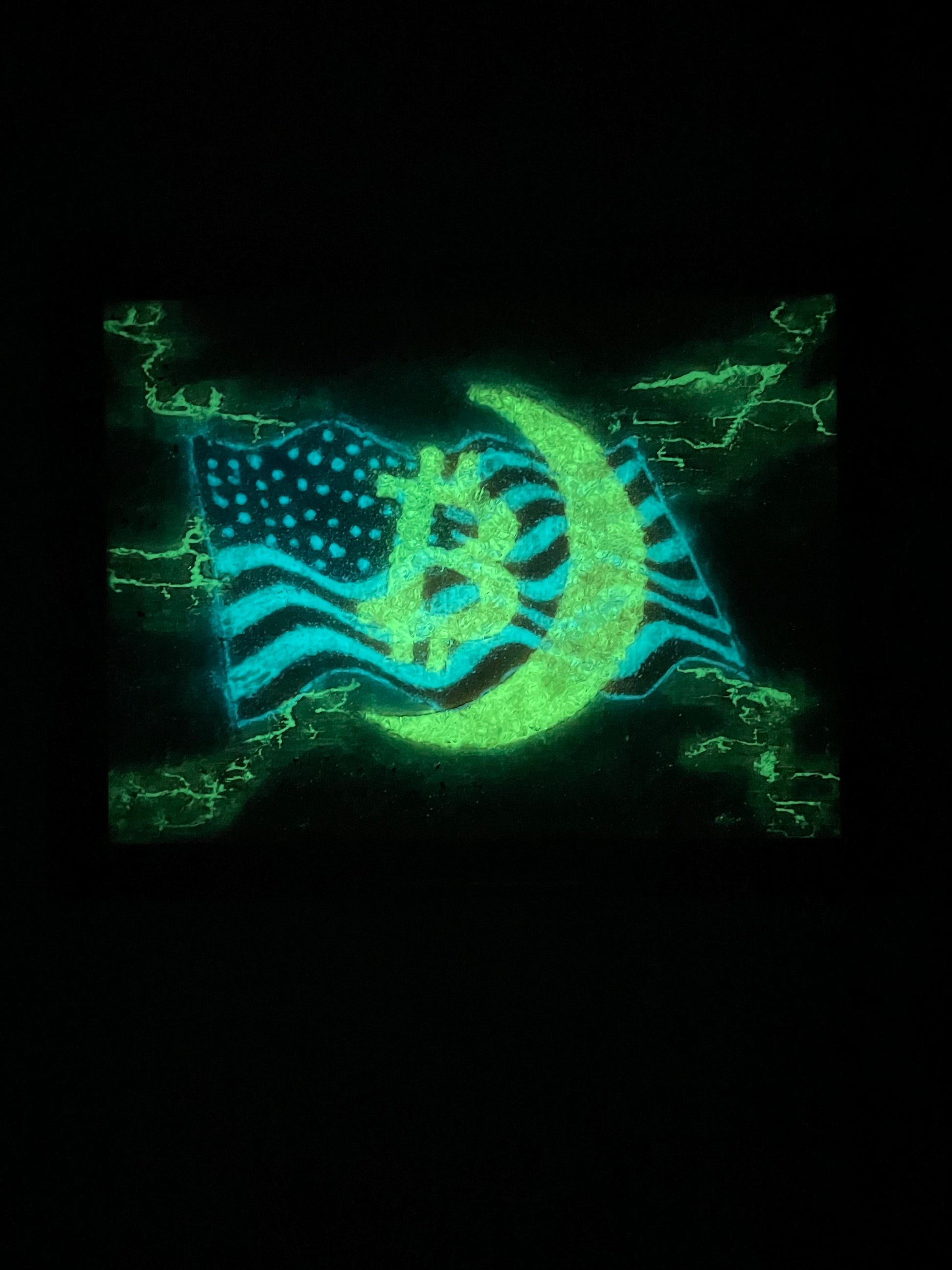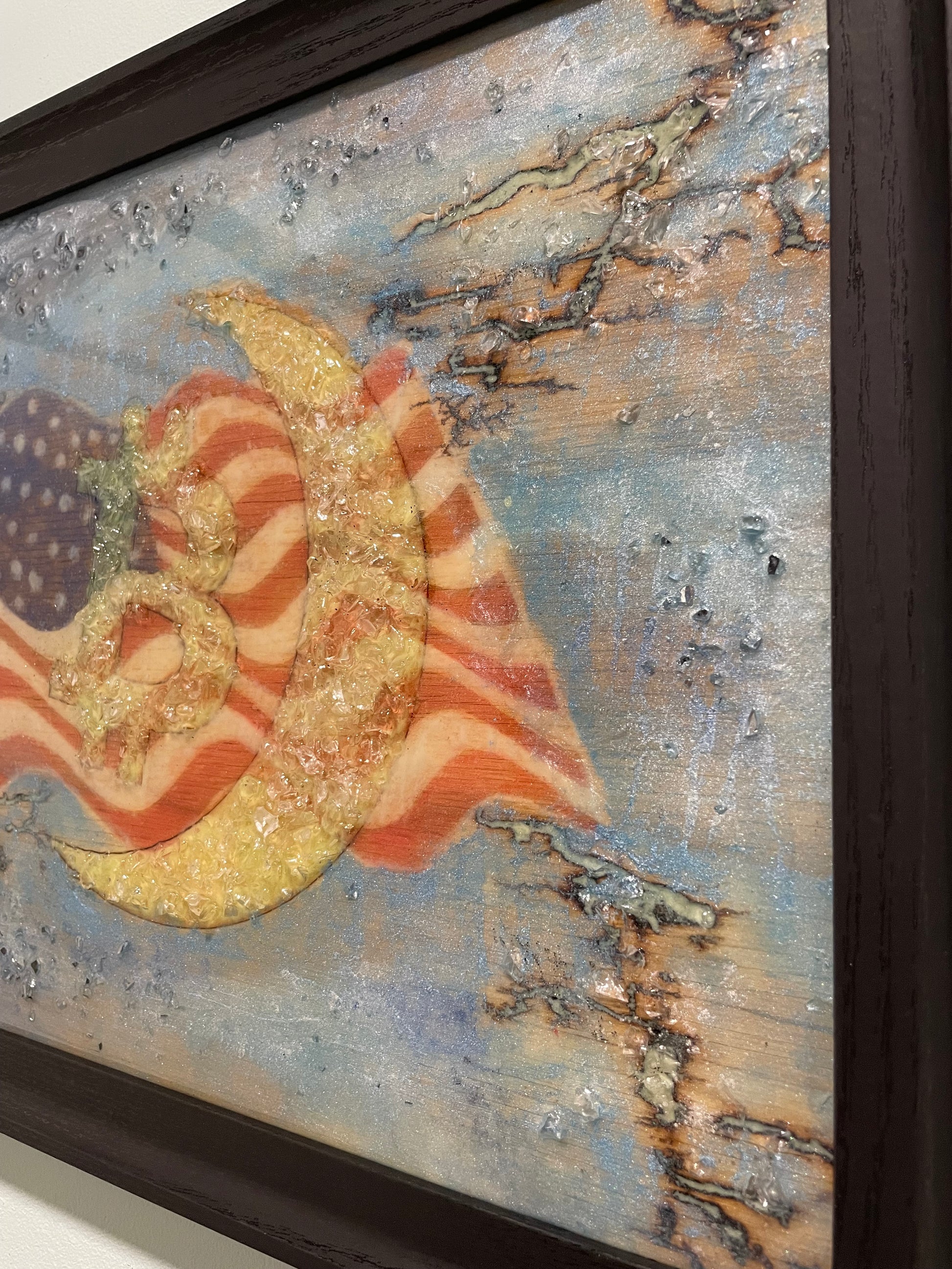 12 x 16”. On wood, lightning via 12K volts of electricity. Epoxy resin finish. Glows in dark.