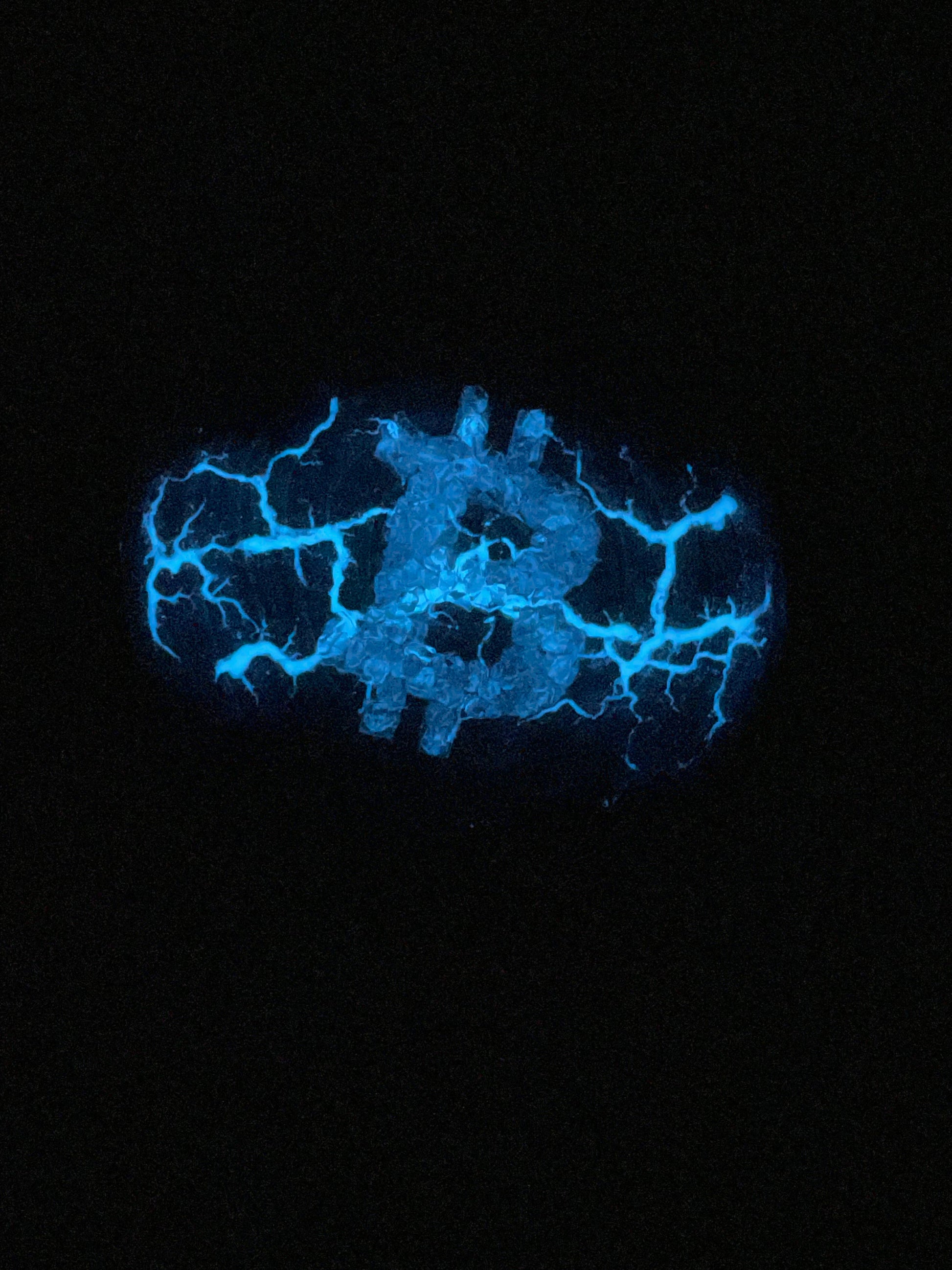 Beautiful piece with wide lighting channels, made via 12K volts of electricity. Glows brilliantly at night. Bitcoin is emerging hard as diamonds!